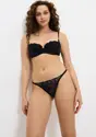 Dieser luxuriöse String wurde für diese ganz besonderen Momente entworfen, in denen Sie sich rundum wohlfühlen möchten. Oder einfach, um jedem Tag einen Hauch mehr Glamour zu verleihen und Ihre natürliche Schönheit zu unterstreichen. Mit seinem eleganten Design und der raffinierten italienischen Spitze wird er zu Ihrem neuen Lieblingsbegleiter für besondere Anlässe.- String mit geringer Abdeckung für eine feminine Silhouette